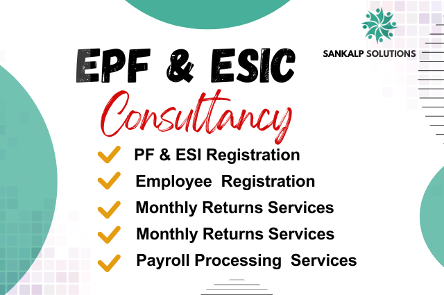 Sankalp Solutions Offers Expert PF And ESI Consultancy Services For Hassle-Free Registration, Filing, And Compliance. Stay Updated, Avoid Penalties, And Focus On Growing Your Business—While We Take Care Of The Rest. From Employee Registration, Monthly Filing, And Inspections To Claim Settlements And Audit Support, We Manage Everything With Accuracy, Transparency, And Timely Execution.